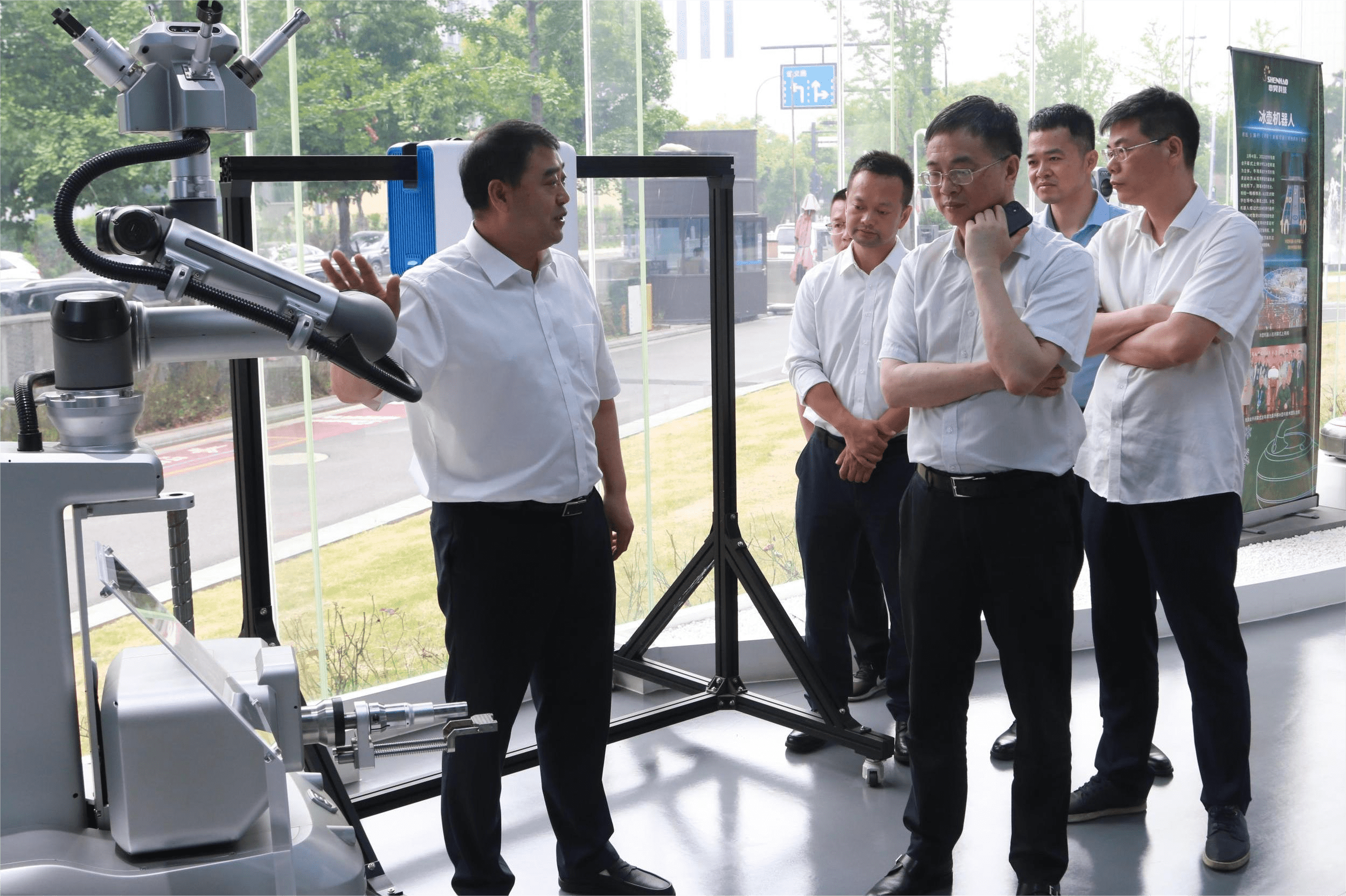 5月30日,杭州地鐵集團董事長朱少杰率領代表團訪問申昊科技,與申昊科技領導就合作事宜進行討論。杭州地鐵集團副總經濟師、投資運營部長周華,機電設備部長朱建華,杭州地鐵運營公司黨委書記、董事長徐波,杭州地鐵科技公司董事長朱佳峰等領導陪同考察。申昊科技董事長陳如申、總經理曹光客等領導出席接待。雙方一同參觀申昊科技,并就地鐵數字化轉型進行探討。