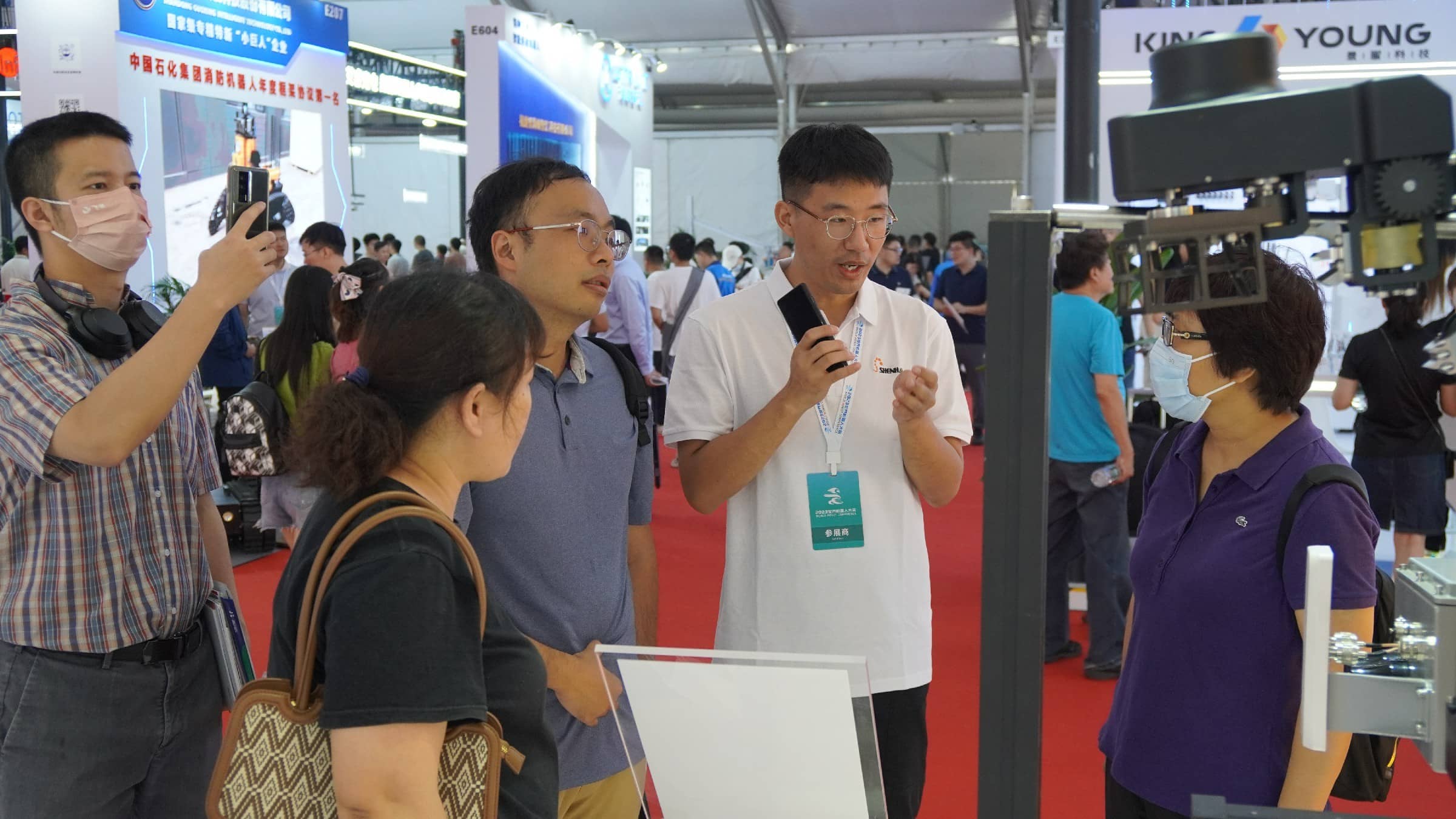 申昊科技的展區(qū),一臺臺智能機(jī)器人在展臺上展現(xiàn)出高度靈活的動作和智能感知能力,引得現(xiàn)場觀眾紛紛駐足觀看。